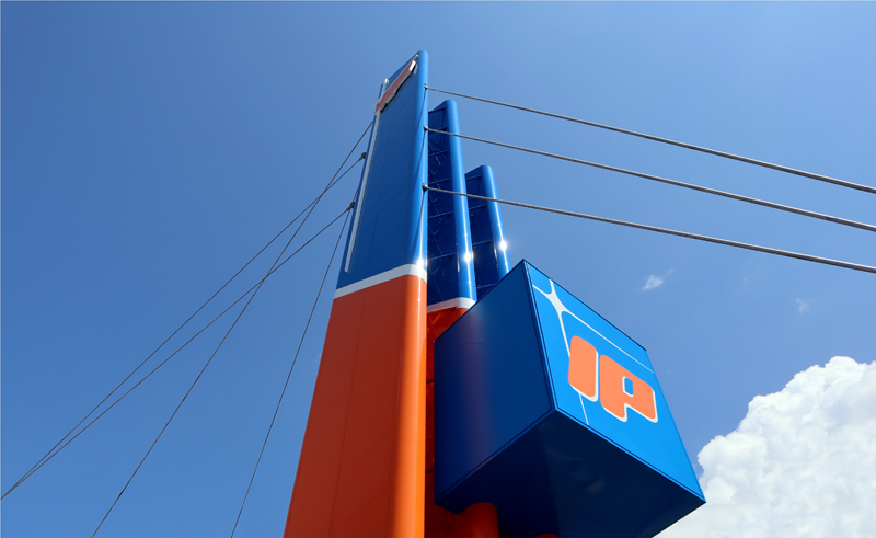 IP è uno dei leader del settore energetico italiano, con una lunga tradizione e una rete capillare di stazioni di servizio distribuite su tutto il territorio nazionale. A Genova, in una zona centrale e ad alta affluenza, IP ha avviato un progetto di trasformazione della stazione di servizio, puntando sull’installazione di elementi distintivi del marchio. Questi elementi, di grande formato e alta visibilità, sono progettati per valorizzare l’identità visiva del brand, creando un impatto scenico forte e immediatamente riconoscibile.