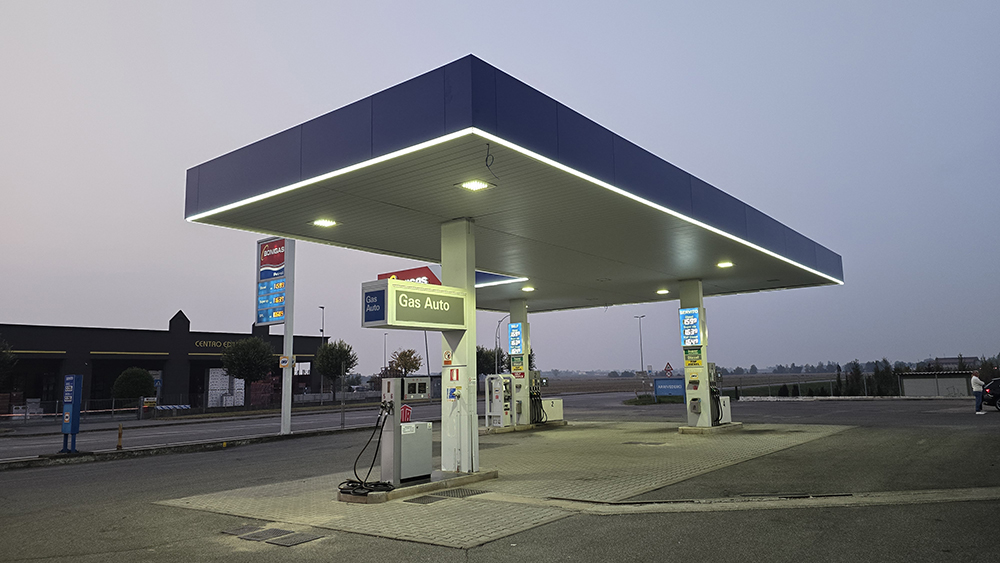 The intervention covers the entire refueling area, including the canopy over the fuel islands.