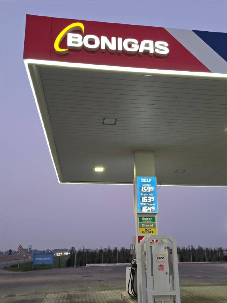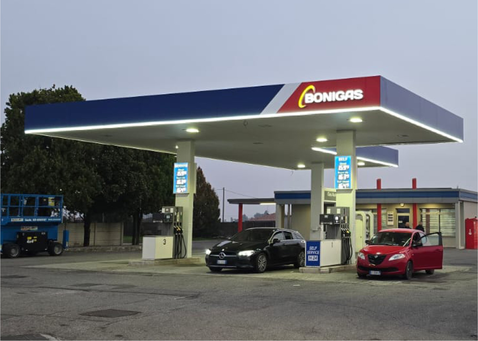 Bonigas Petroli è una piccola realtà privata con sede nella Bergamasca, operante nel settore della distribuzione di carburanti. La collaborazione ha riguardato un intervento mirato sul singolo punto vendita, con l’obiettivo di valorizzare e uniformare l’immagine del marchio attraverso spazi più moderni, funzionali e facilmente riconoscibili.